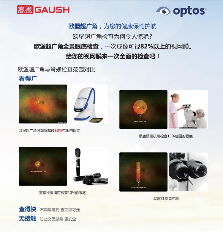 Daytona成像技术单次成像可达200°,能够覆盖眼底82%的视网膜,加上眼位引导功能,拍照范围科达到220-240°。发现和诊断视网膜疾病,非常高效。Daytona临床应用广泛,可以检查的疾病包括:糖尿病视网膜病变检出及随访,黄斑变性等黄斑部病变、青光眼、高度近视、视乳头水肿、视网膜变性疾病、视网膜静脉阻塞等血管性疾病、视网膜裂孔及视网膜脱离、全身性变性视网膜病变、早产儿视网膜病变、视网膜劈裂、眼底肿瘤等。